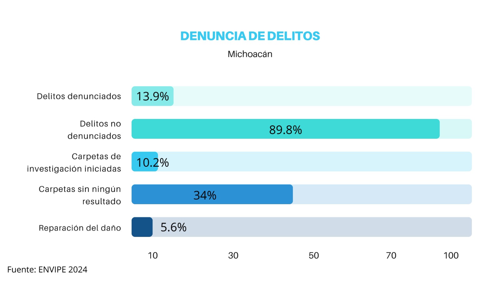 Redacción Solamente el 13.9 por ciento de los delitos que ocurren en Michoacán son denunciados ante el Ministerio Público; sin…